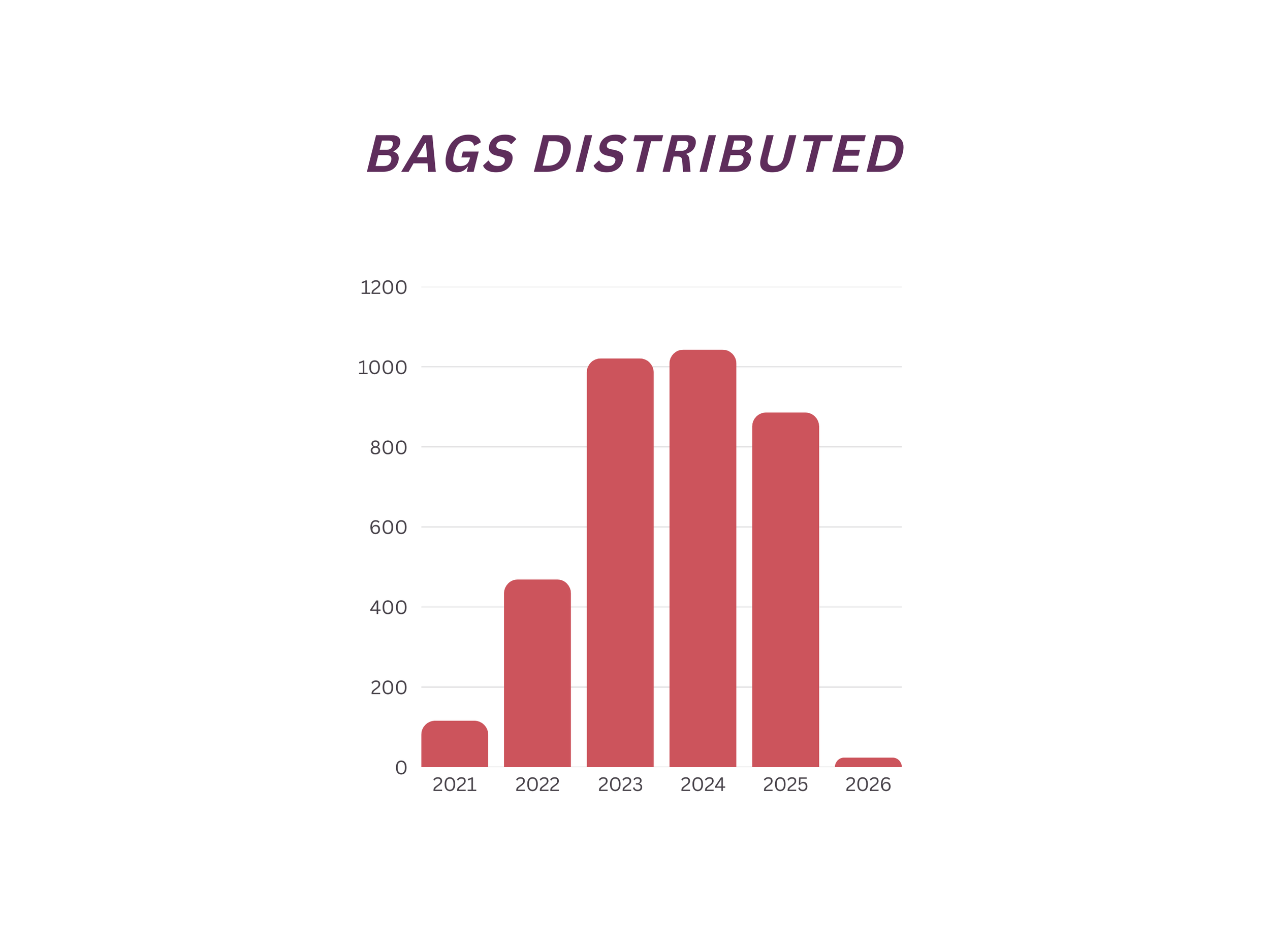 As of January 2026, we have distributed 3,559 bags to families entering the Down syndrome community.